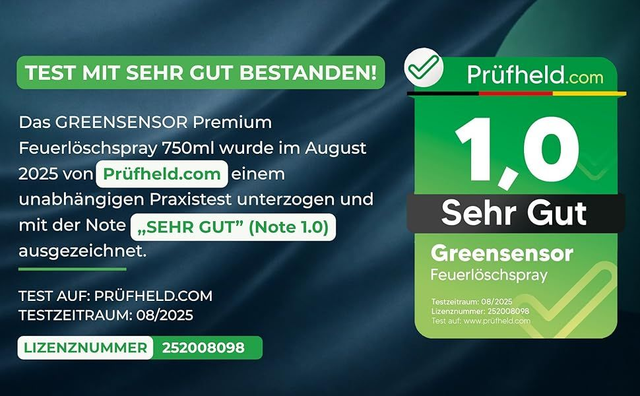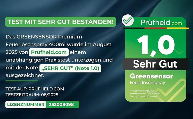 2. Das Greensensor Feuerlöschspray 400 ml ist kein Feuerlöscher im Sinne der Norm EN3, sondern ein modernes,